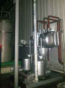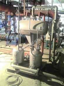 通常冷凝水可以通過疏水閥很方便地排出設備,進入冷凝水排放系統,如果冷凝水已經被污染,則應該直接排放掉;如果沒有污染,可以將其回收到鍋爐給水箱以利用冷凝水含有的熱量,這樣同時也節省了水和水處理的費用。有時用汽設備內部會產生真空,這樣會影響冷凝水的排出,從而影響蒸汽換熱效率,這時冷凝水就需要用泵壓出去。
